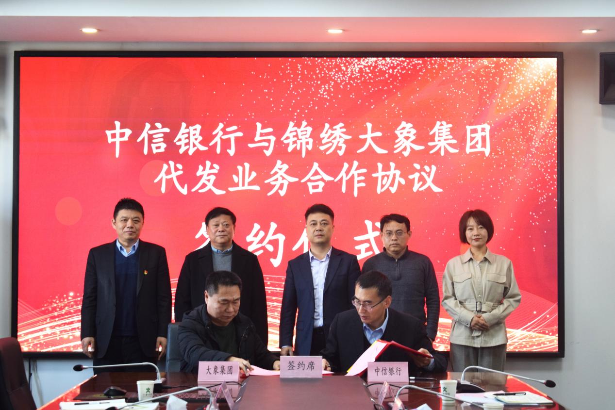 1月12日,中信銀行太原分行曹謙副行長(zhǎng)一行來(lái)到山西錦繡大象農(nóng)牧股份有限公司考察指導(dǎo),開(kāi)展業(yè)務(wù)洽談,出席雙方黨建聯(lián)建、代發(fā)業(yè)務(wù)簽約等活動(dòng)并進(jìn)行了親切友好的座談。