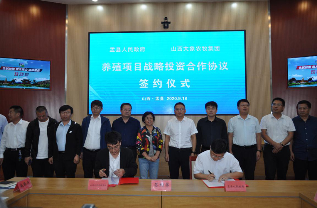 9月18日,山西錦繡大象農(nóng)牧股份有限公司與盂縣縣政府舉行戰(zhàn)略合作協(xié)議簽訂儀式。盂縣縣長梁海昌,縣委常委、副縣長連斌,副縣長郭華,山西錦繡大象農(nóng)牧股份有限公司投資建設(shè)部總經(jīng)理梁紅斌、山西新大象中區(qū)事業(yè)部總經(jīng)理翟潤生參加簽約儀式。
