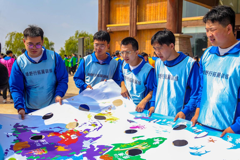 16日全天為拓展訓(xùn)練。早晨的跑操讓大家保持著身體的活躍和敏捷,以良好的狀態(tài)投入到一天的拓展訓(xùn)練中;摞高塔游戲能夠幫助團(tuán)隊(duì)成員們更好的理解團(tuán)隊(duì)合作的重要性,通過(guò)繩子合力將木塊摞得高而穩(wěn)固,很好的鍛煉了團(tuán)隊(duì)成員的互動(dòng)協(xié)作能力,也顯現(xiàn)了有效溝通的魅力;小球“環(huán)游世界”中每個(gè)人都需要找到自己的位置,密切觀察其他隊(duì)員的變化,及時(shí)調(diào)整球的方向和力度,鍛煉了團(tuán)隊(duì)共同面對(duì)挑戰(zhàn)的應(yīng)急能力;在搭建船帆的過(guò)程中,大家根據(jù)圖紙進(jìn)行不斷地嘗試和調(diào)整,直到達(dá)到最理想的效果。伴隨著現(xiàn)場(chǎng)人員的吶喊聲和鼓掌聲,標(biāo)有“錦繡大象,揚(yáng)帆起航”的巨幅彩帆緩緩升起,人們看著自己的勞動(dòng)成果激動(dòng)得歡呼跳躍,將整個(gè)拓展訓(xùn)練氛圍推向了高潮。