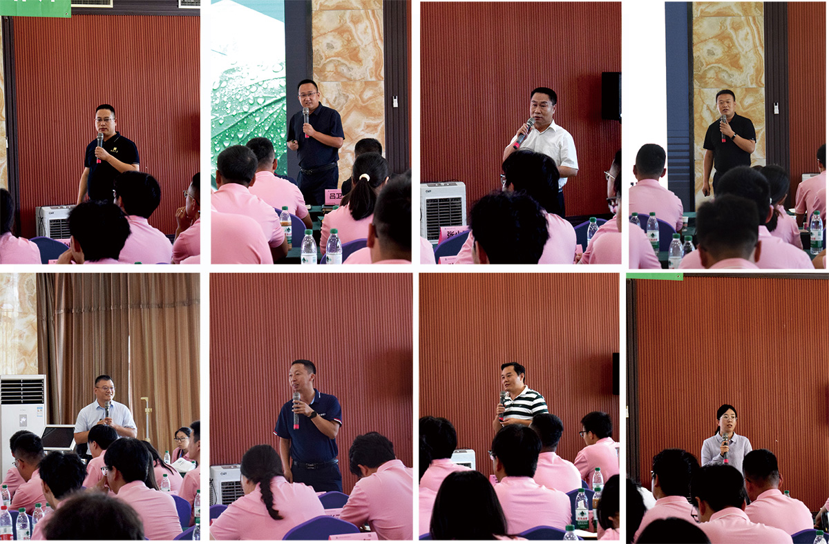 大象豬業(yè)、新大象養(yǎng)殖、飼料產(chǎn)業(yè)以及禽產(chǎn)業(yè)事業(yè)部的主要負責人,分別詳細介紹了本產(chǎn)業(yè)的基本情況、人才培養(yǎng)路徑,生產(chǎn)經(jīng)營規(guī)劃目標,并分享了職場的工作經(jīng)驗與感悟;財務部與法務部負責人分別傳授了相關專業(yè)領域的知識。