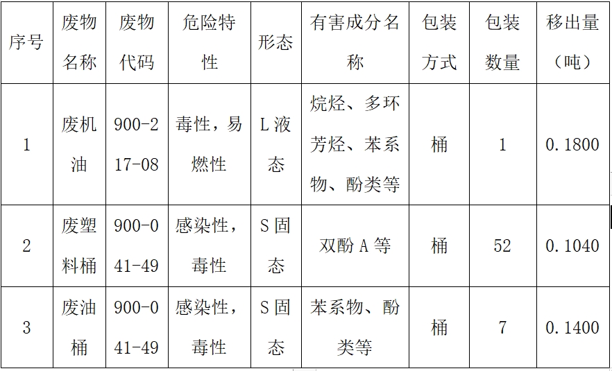 2023年因設(shè)備維護(hù)產(chǎn)生危險廢物明細(xì)如下: