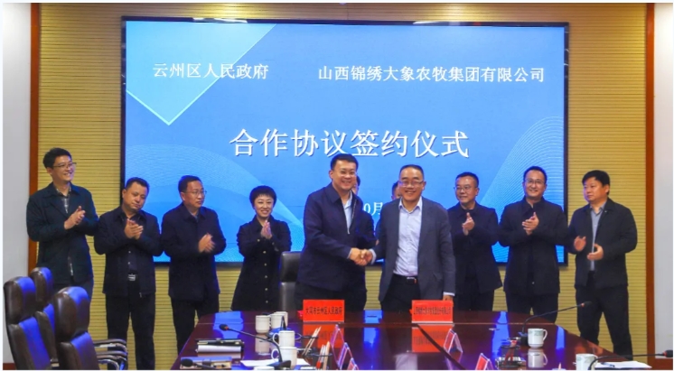 10月23日,山西錦繡大象農(nóng)牧集團股份有限公司與山西省大同市云州區(qū)政府成功簽約肉雞屠宰加工項目。集團副董事長兼常務副總經(jīng)理劉文革,云州區(qū)區(qū)委常委、副區(qū)長賀睿分別代表雙方簽署合作協(xié)議。