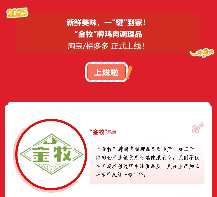 新鮮美味,一“鍵”到家!“金牧”牌雞肉調(diào)理品電商平臺正式上線!