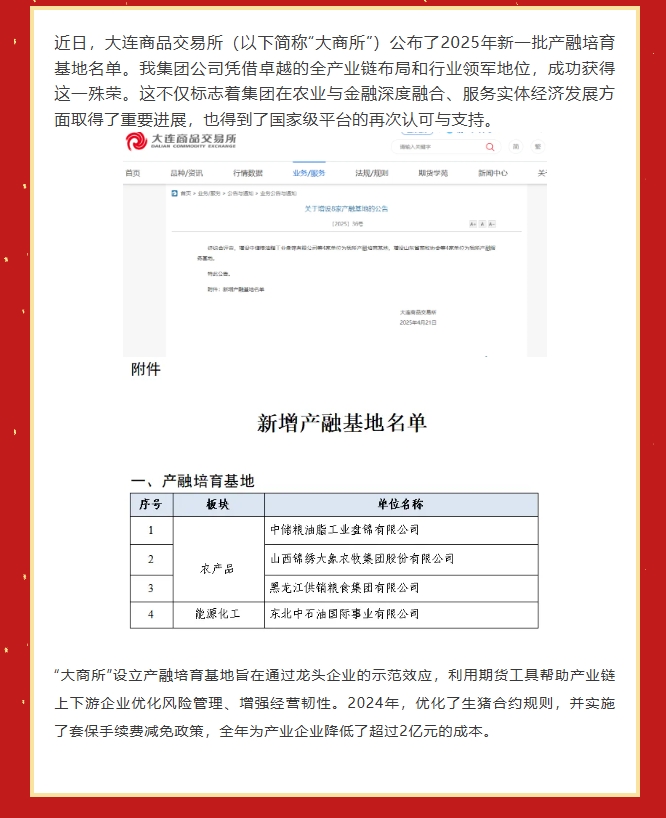 喜報(bào):山西錦繡大象農(nóng)牧集團(tuán)股份有限公司獲選為大連商品交易所產(chǎn)融培育基地