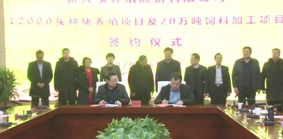 1月6日上午,山西新大象養(yǎng)殖股份有限公司與中陽縣在縣委主樓一樓東會議室舉行12000頭種豬養(yǎng)殖項目及20萬噸飼料加工項目簽約儀式。中陽縣黨委領導班子成員、山西新大象養(yǎng)殖股份有限公司負責人出席。